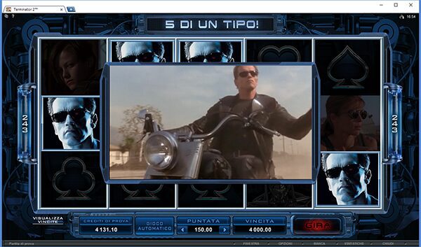 Il s’agit d’une machine à sous vidéo à 5 rouleaux avec 243 combinaisons gagnantes et en style « Microgaming » sans lignes de paiement; la machine à sous propose des symboles spéciaux, tels que les symboles wild et scatter, qui permettent d’accéder à la fonctionnalité « free spins », une caractéristique caractérisée par l’insertion d’une ligne supplémentaire de symboles, ce qui porte les combinaisons gagnantes à 1024 pendant ce mode! Enfin, une fonctionnalité « aléatoire » appelée T-800 Vision mérite également d’être mentionnée.